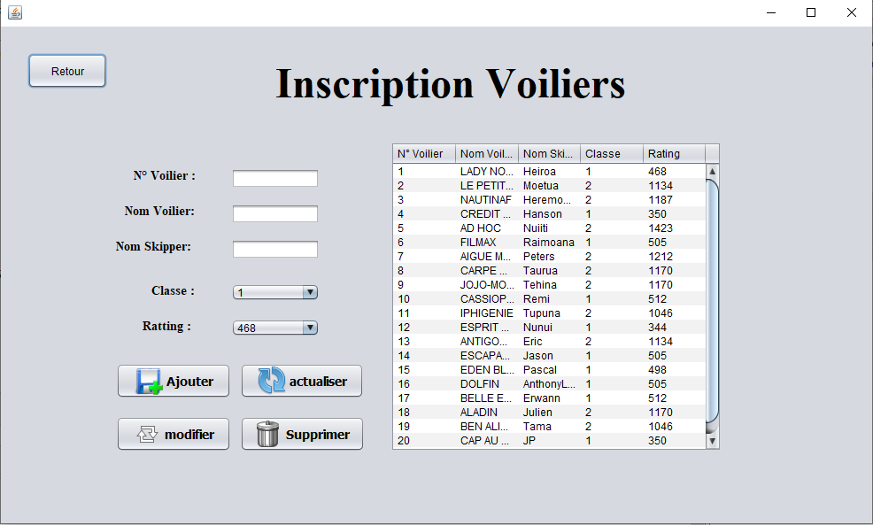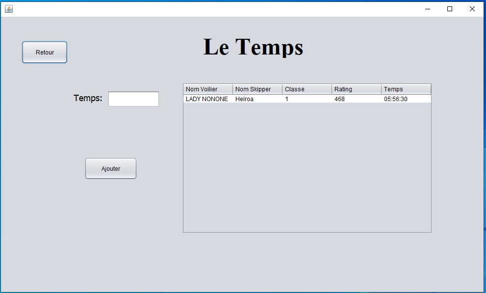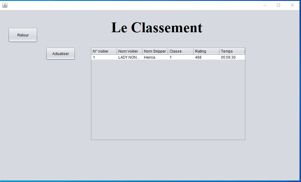 Le projet EOLE est une application Java qui gère une course de voilier. Sur l'application, il y a la possibilité d'enregistrer les participants, d'ajouter leurs temps et de voir leurs classement en fonction de la Classe et le Rating du bateau.
