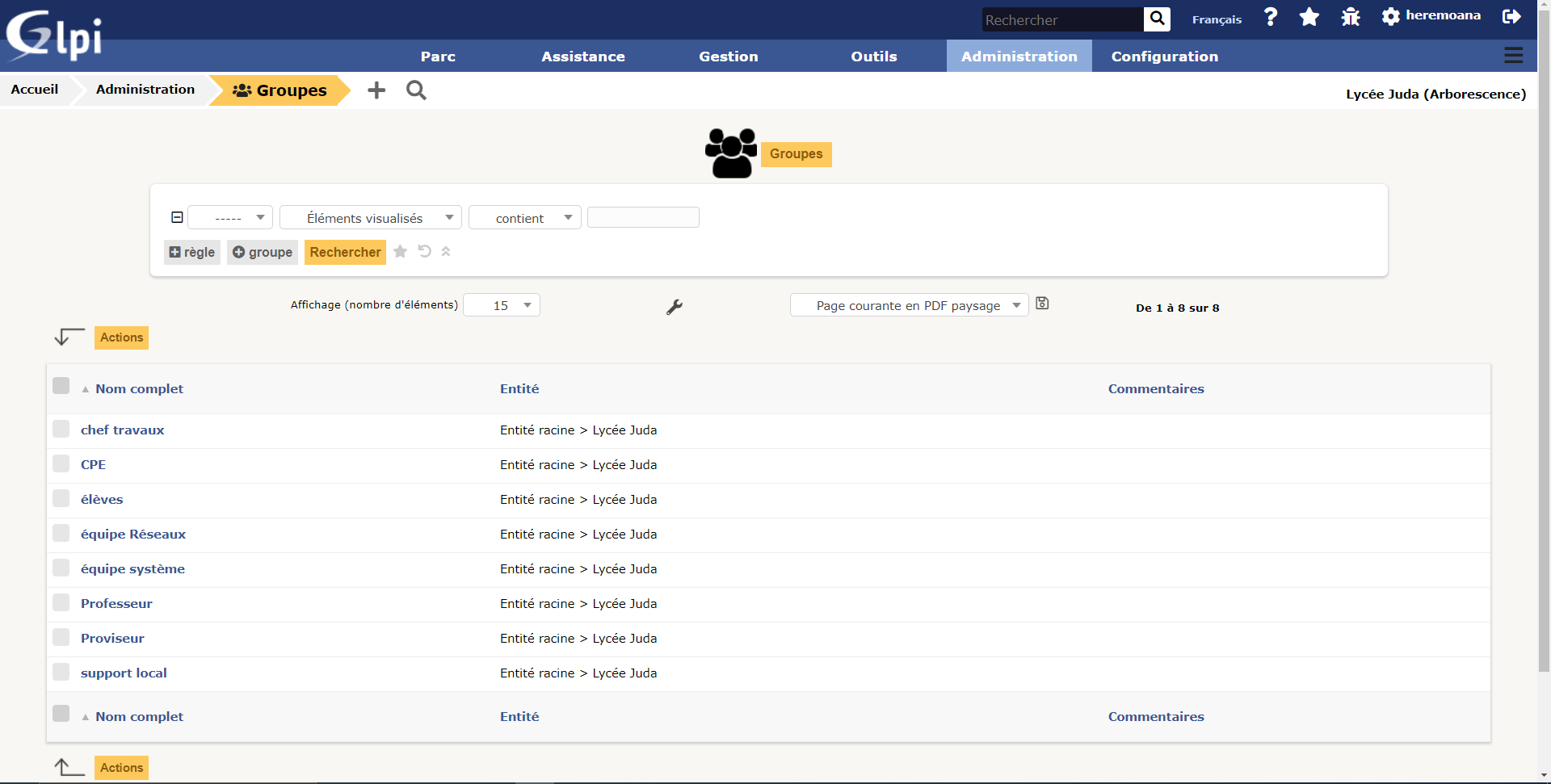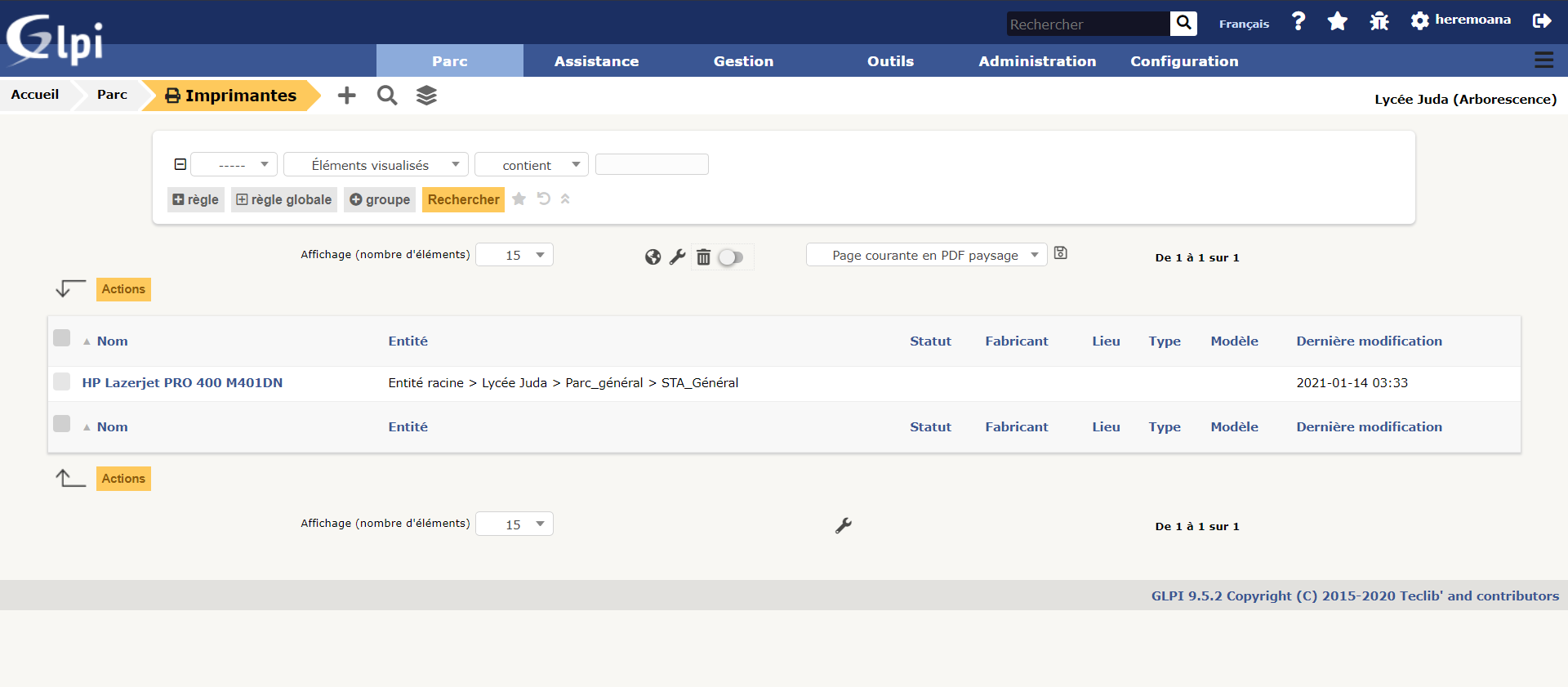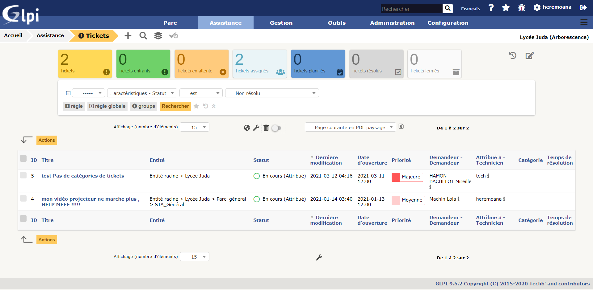 Mise en place d'une gestion de parc informatique pour un lycée avec GLPI, ainsi qu'un services assistance qui se fait via un envoye de ticket.
