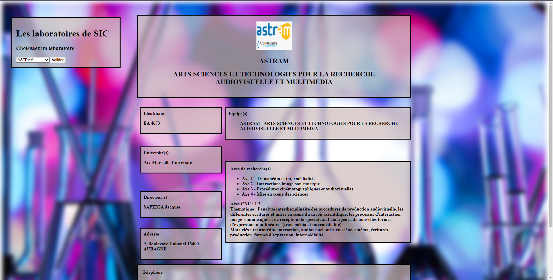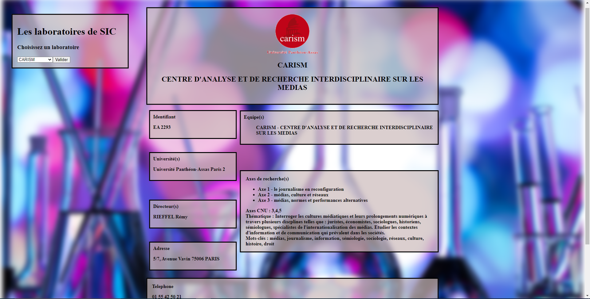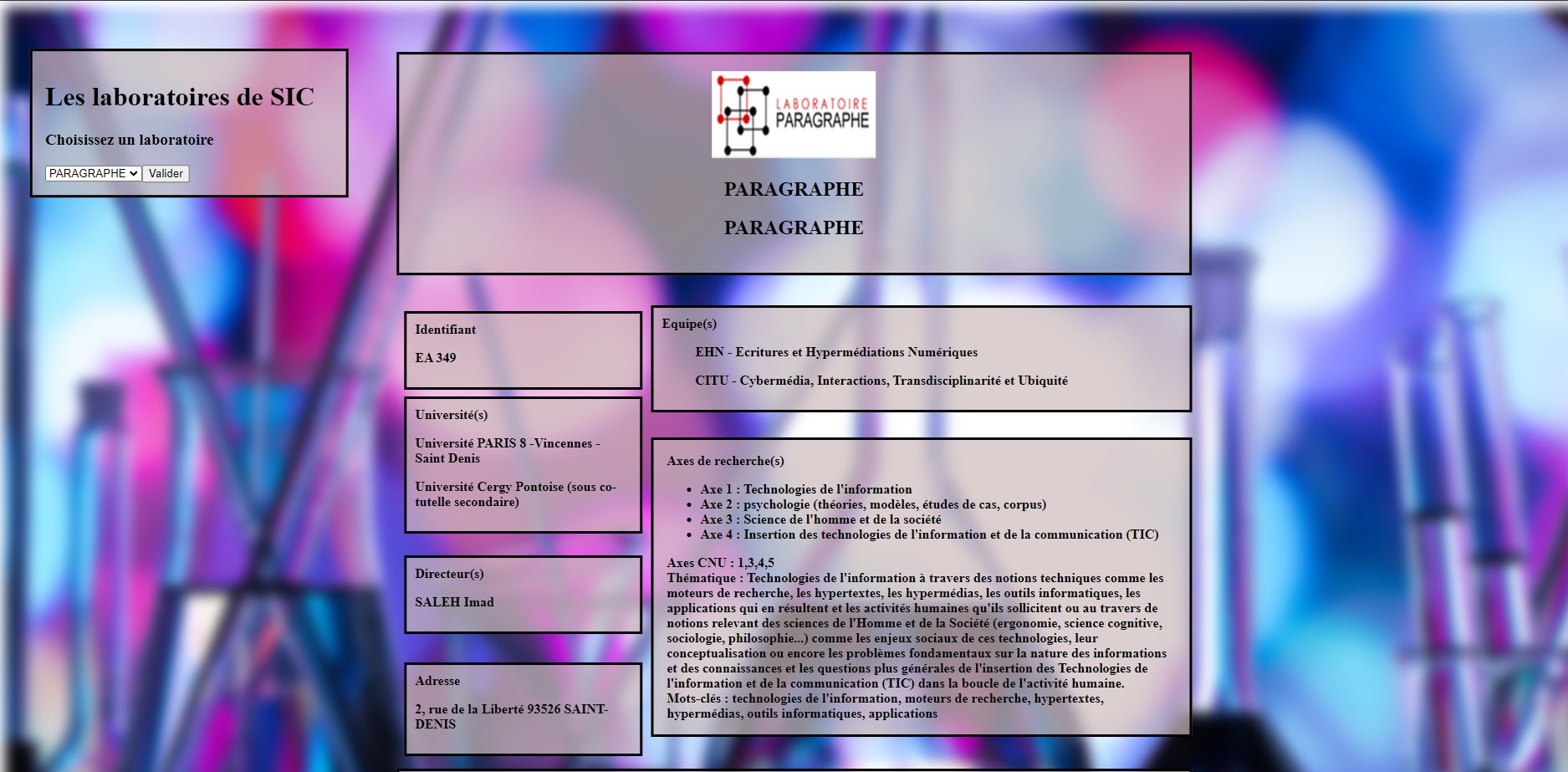 Site Web qui affiche les informations des laboratoires et leurs équipes qui y travaillent ou s’intéressent aux sciences de l’information et de la communication.